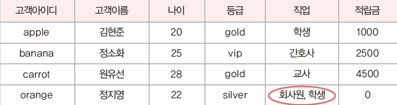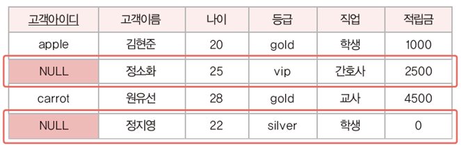 이 그림에서는 cherry라는 고객아이디는 존재하지 않기 때문에 참조 무결성 제약조건을 위반했다.