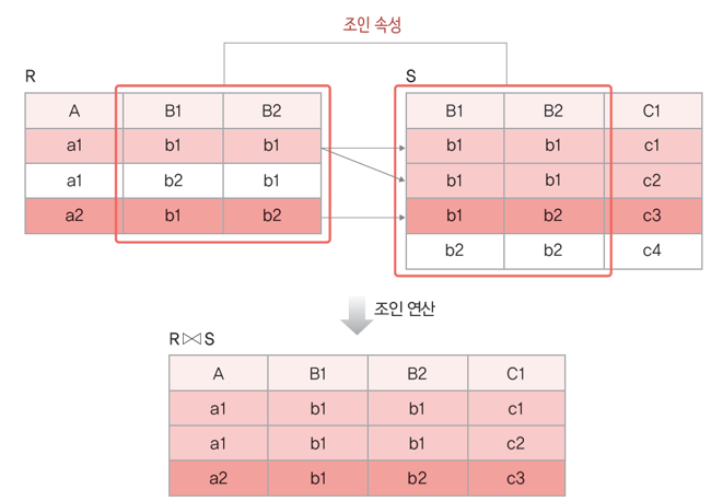 2. 주어진 조인 조건을 만족하는 두 릴레이션의 모든 투플(중복 허용)을 연결하여 생성된 새로운 투플로 결과 릴레이션을 구성