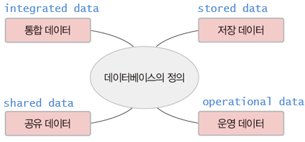 데이터베이스(DB; DataBase): 특정 조직의 여러 사용자가 공유하여 사용할 수 있도록 통합해서 저장한 운영 데이터의 집합