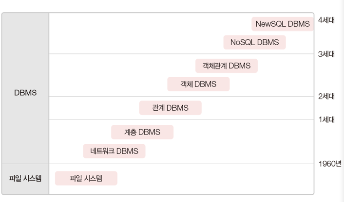 NewSQL DBMS: 관계 DBMS의 장점 + NoSQL의 확장성 및 유연성, ex) 구글 스패너(Spanner), 볼트DB(VoltDB), 누오DB(NuoDB)