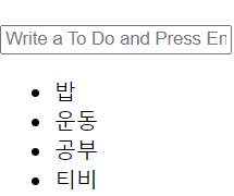 그 후 toDos에 parsedToDos를 넣어주고 forEach(paintToDo)를 하면 새로고침하거나 다시 입력해도 화면에 리스트 목록들이 나와있다.