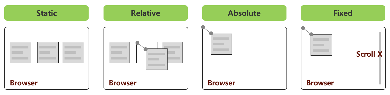 -position의 기본값이며 요소를 순서대로 배치한다. 원하는 위치에 배치할 수 없다.