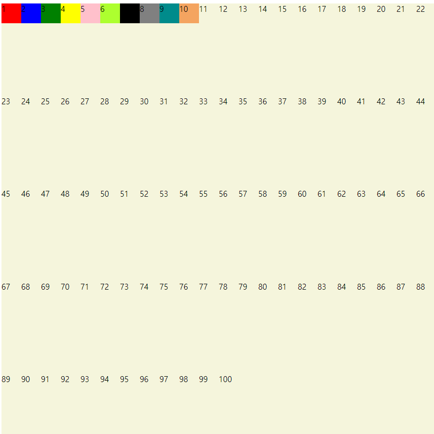 flex-start: 기본값이며 처음부터 왼쪽으로 나열한다. 수직축이 중심축이면 위에서 아래로