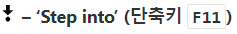 5. Step out(shift+f11): 실행 중인 함수의 실행이 끝날 때 까지 실행을 계속한다.