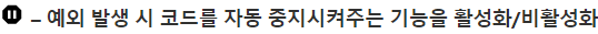 7. 예외 발생 시 코드를 자동 중지시켜주는 기능을 활성화/비활성화