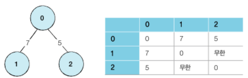 연결이 되어 있지 않은 노드끼리는 무한의 비용이라고 작성한다.