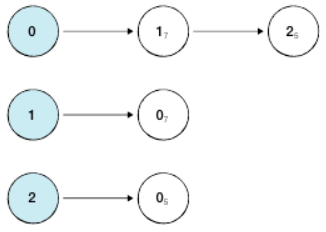 [[(1, 7), (2, 5)], [(0, 7)], [(0, 5)]