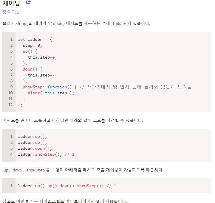 이렇게 this를 리턴해주면 체이닝이 가능해진다.