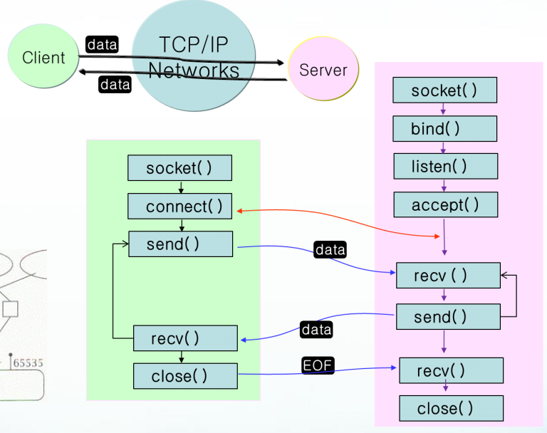 네트워크(인터넷)간의 프로세스간 데이터전송(send, receive)