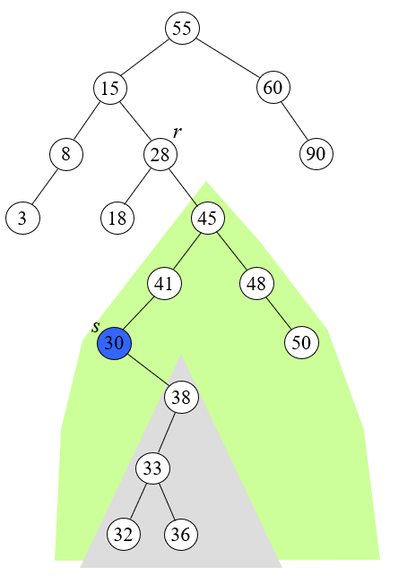 여기서 28을 삭제하면 왼쪽 서브 트리와 오른쪽 서브 트리가 남는다. 그리고 여기서 두가지 케이스로 나뉜다.