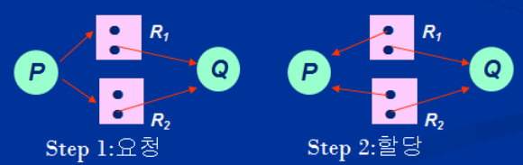 자원이 할당되는 경우 프로세스 방향으로 화살표