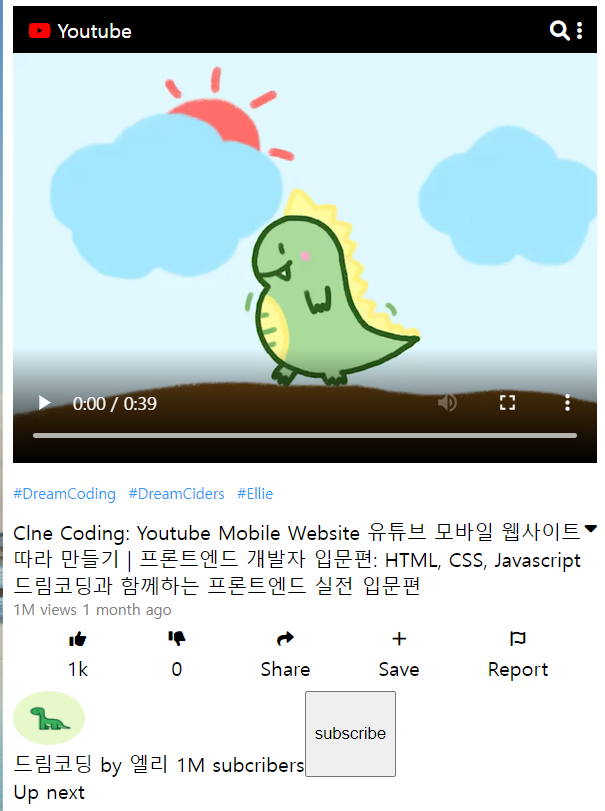 드림코딩-유튜브 페이지 만들기(실패 ㅠㅠ) 본문