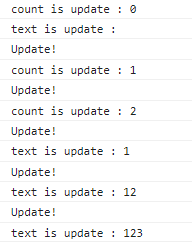 두번째 인자를 안써주면 업데이트를 할 때 마다 콘솔에 Update!가 출력된다.