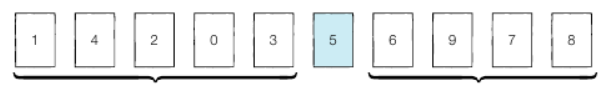 이러다보면 왼쪽 리스트는 모두 피벗보다 작고 오른쪽은 모두 피벗보다 큰 데이터가 위치한다.