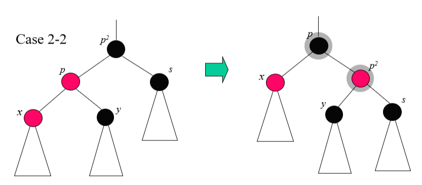 그리고 부모의 부모가 루트 노드가 아니면 빨간색으로 바꾼다.