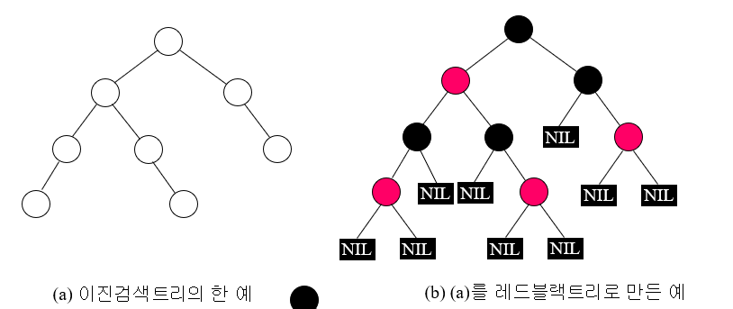 오른쪽 그림처럼 NIL에 갈 때 만나는 블랙 노드 개수가 모두 3개로 통일이다.