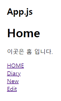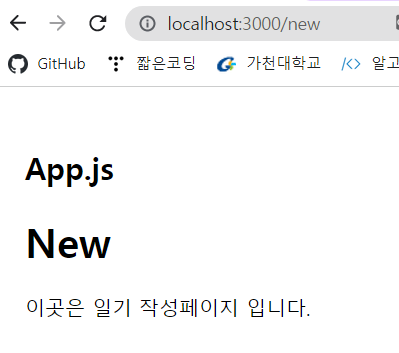 그리고 App.js에 가서 import하고 <RouteTest/>를 추가하면 페이지 이동 요소가 만들어진다.