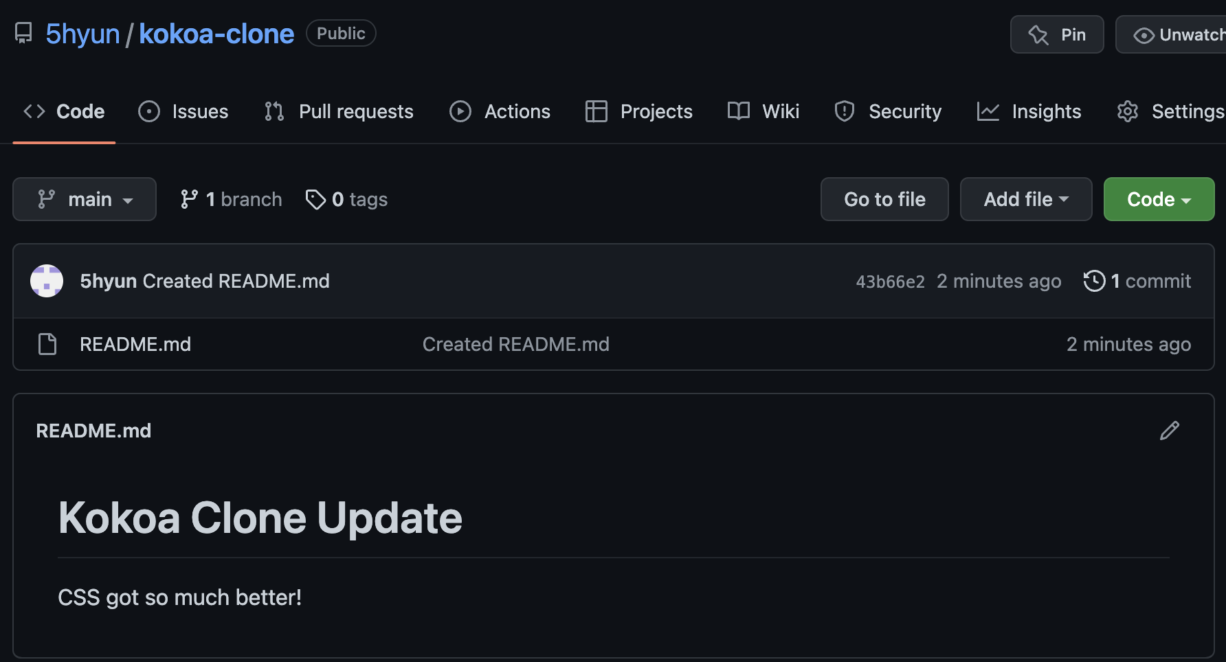 이게 깃허브 페이지에 가면 게시가 되어있다. 수정을 할 때도 위 과정과 똑같이 해주면 된다.