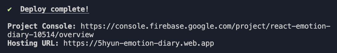 다 진행하고 도메인을 만들어줬다. 그리고 firebase.json에