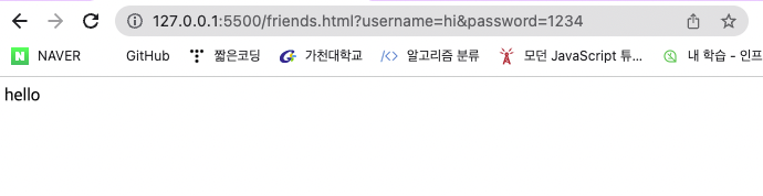로그인하면 friends.html로 넘어가게 된다. 그리고 URL을 보면 id, password가 같이 나온다.
