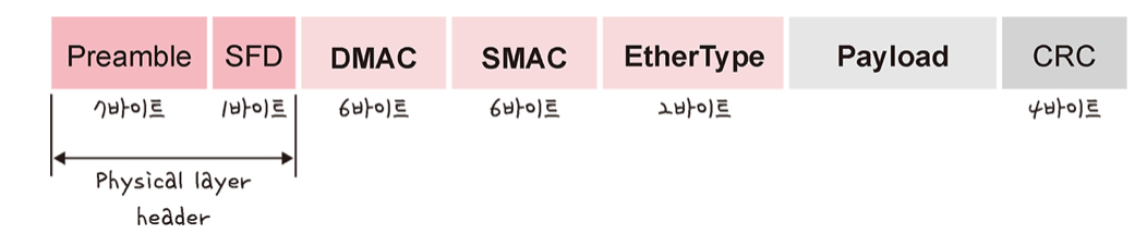 - DMAC, SMAC: 송신, 수신 MAC 주소