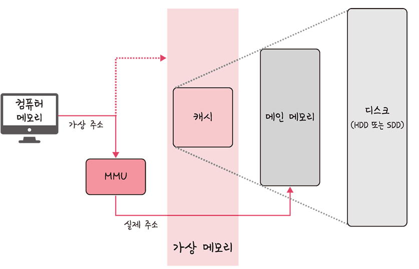 - 페이지(page): 가상 메모리를 사용하는 최소 크기 단위