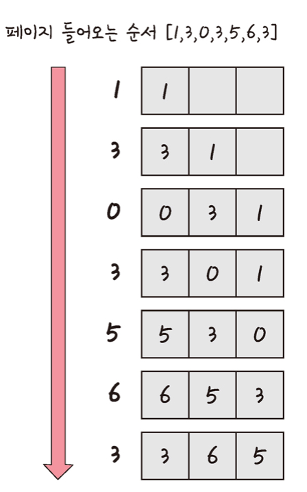 5번째로 들어오는 5번 페이지가 왔을 때, 가장 오래된 1번 페이지는 스왑된다.