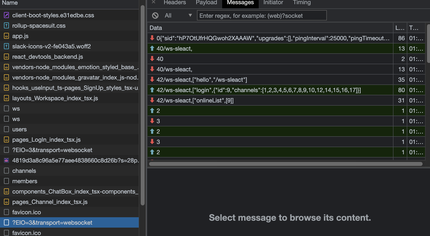 소켓이 연결되면 백엔드에서 소켓 아이디(sid)를 보내주고 프론트와 연결한다. 그리고 프론트에서는 ws-sleact로 연결하겠다고 알려준다.