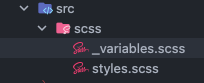 이렇게 _variables.scss를 만든다. _의 의미는 scss만을 위한 파일이란 의미다. css로 컴파일되지 않는다.