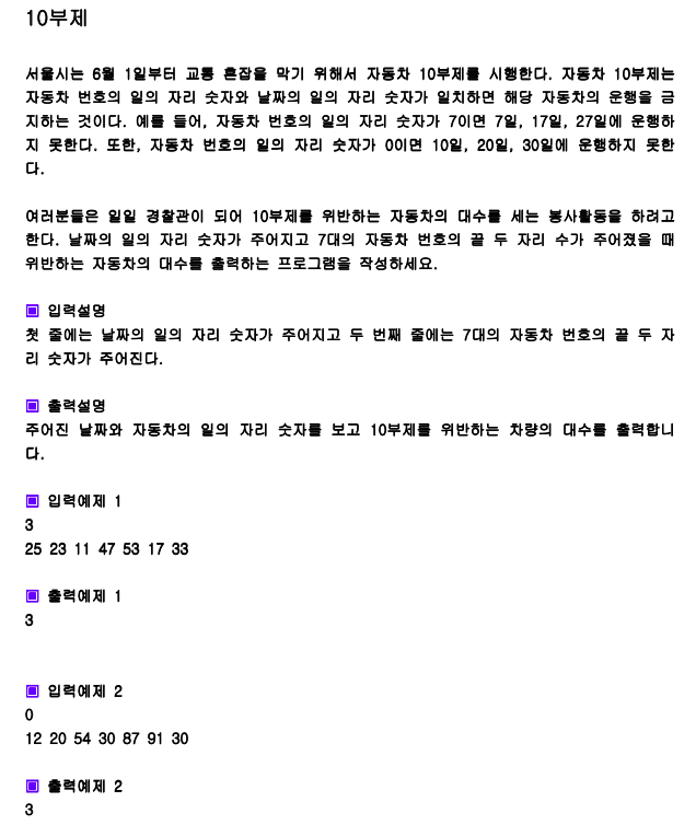날짜와 차 번호 모두 10으로 나눈 나머지 값으로 비교한다.