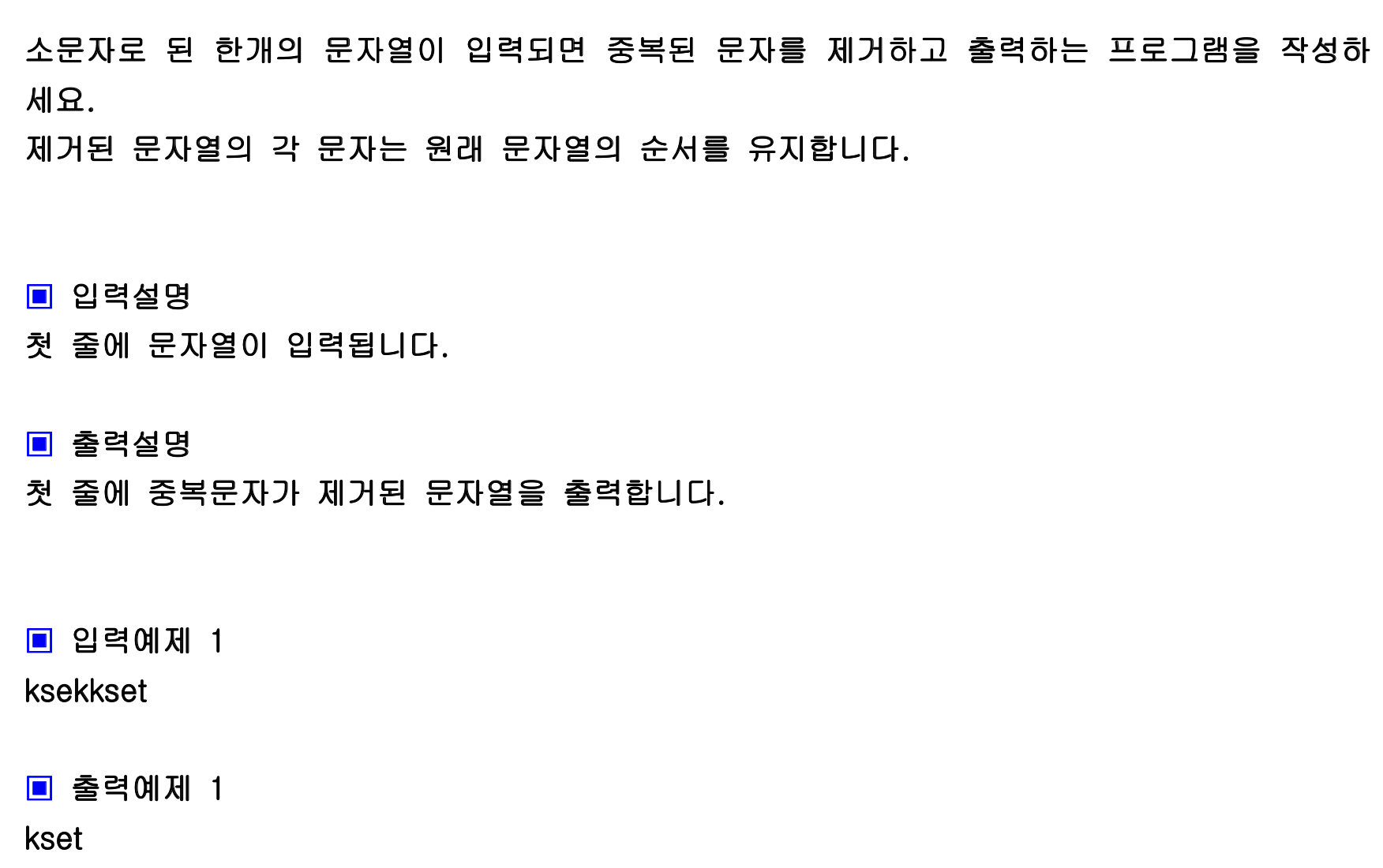 indexOf를 이용해서 문제를 풀면된다. for문을 돌리면서 문자 하나하나를 확인하는데 만약 중복되는 문자가 있다면 indexOf를 했을 때 자기의 인덱스 번호와 다를 것이다.