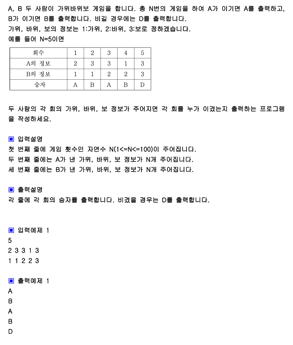사실 해결법은 간단하다. 하지만 난 일일히 비교해서 풀었다. 강사님 풀이에서는 A가 이기는 기준을 다 나열하고 아닌 경우 B 가 이긴 경우로 했다.