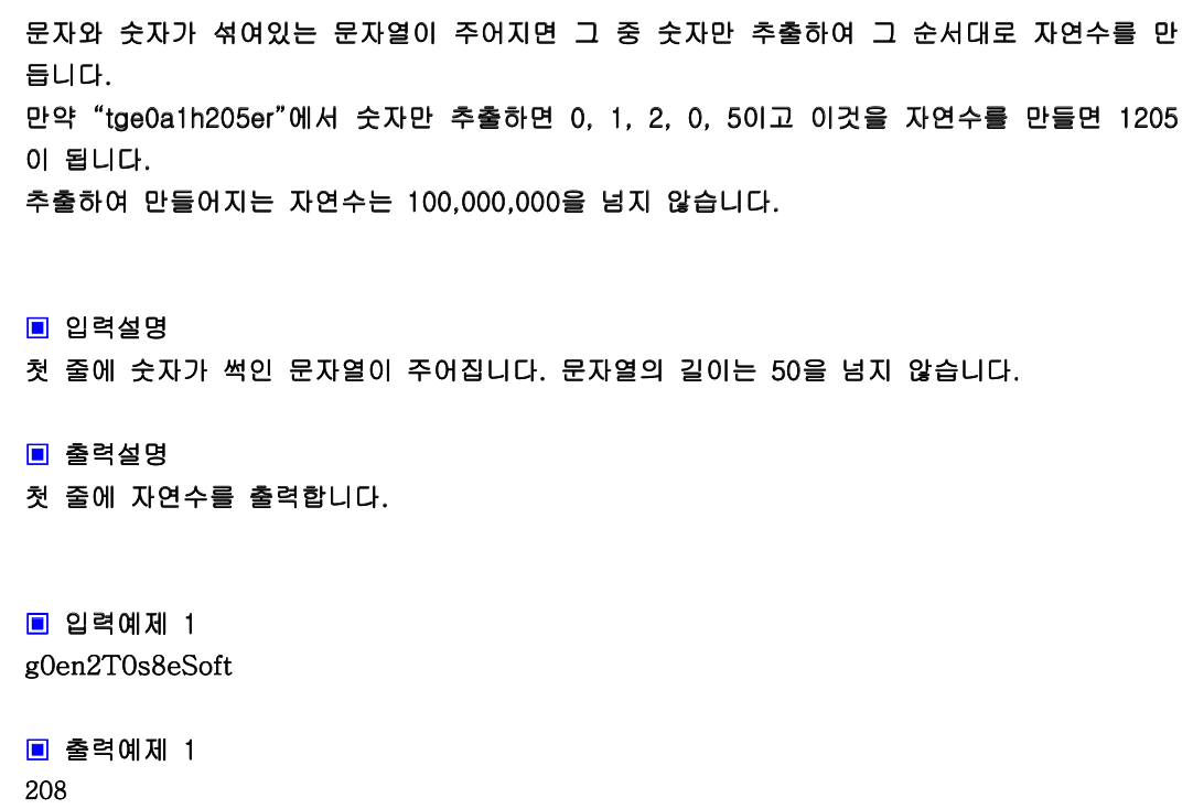 isNaN 함수를 활용해야한다. 반복문을 돌면서 isNaN 함수에 문자를 넣었을 때 false가 나오면 숫자이다. 따라서 ! 연산자를 이용해서 숫자를 answer에 넣어주면 된다.