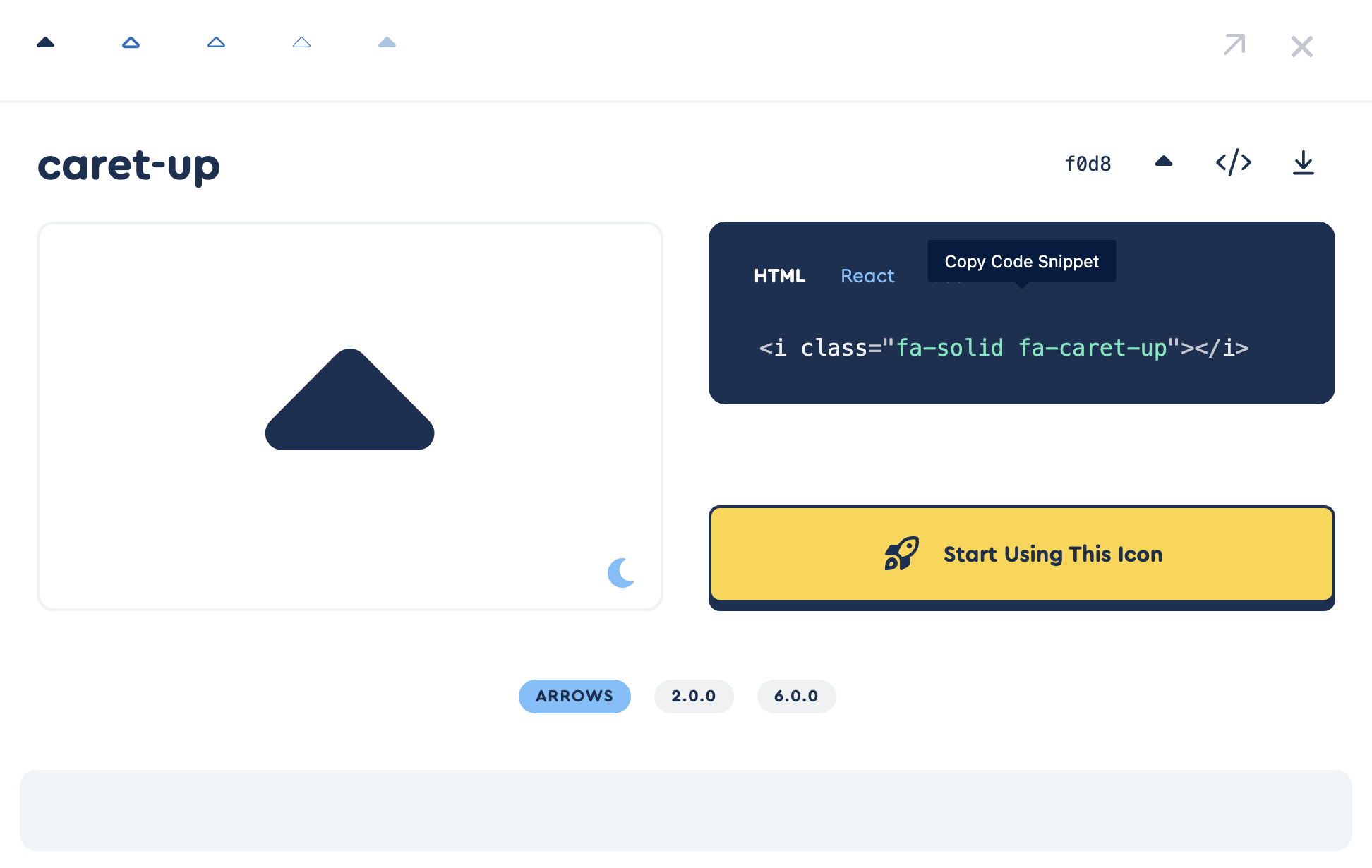 위 사진에서는 "fa-caret-up"으로 나와있다. 하지만 리액트에서는 "faCaretUp" 이렇게 해줘야한다. 이런 표기법을 카멜 표기법이라고 한다.
