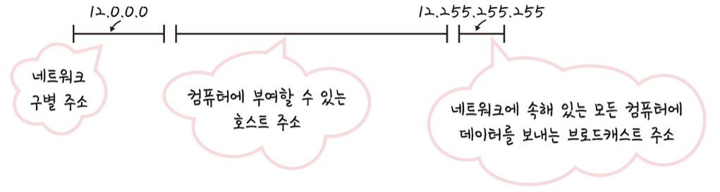 네트워크 첫 번째 주소: 네트워크 구별 주소로 사용