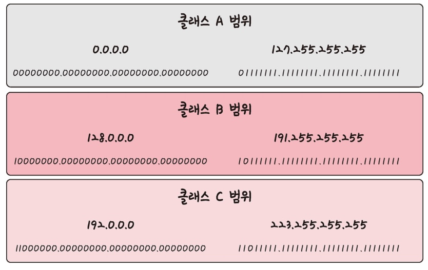 예를 들어 클래스 A는 0.0.0.0부터 127.255.255.255까지 범위를 갖는다.