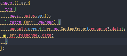 위 코드에다가 err.response?.data를 추가하면 위에서 선언해줬지만 ts가 건망증이 생겨서 잊어버린다.