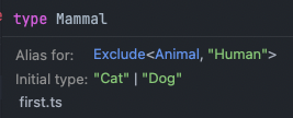 type Mammal = Exclude<Animal, 'Human'>;
