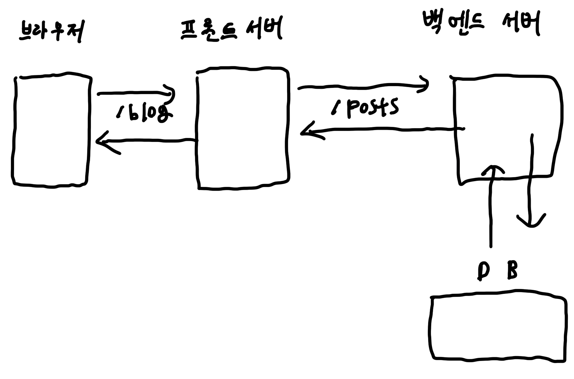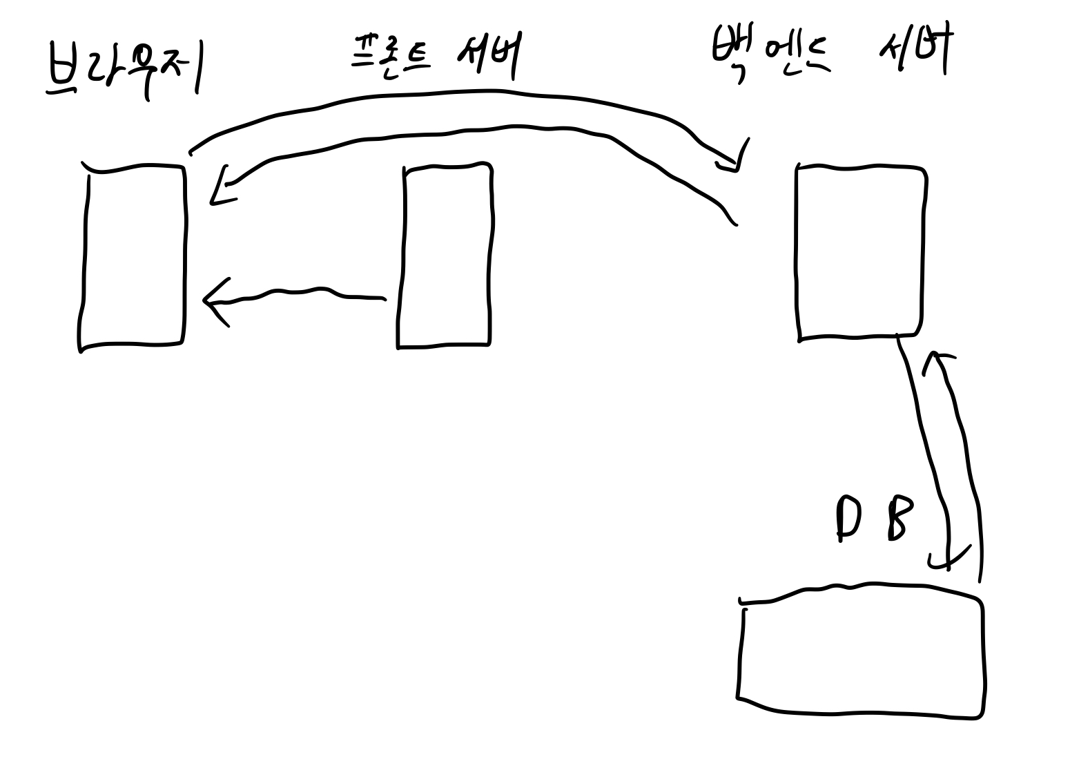 4. 그 동안 브라우저는 프론트 말고 바로 백엔드 서버에 데이터를 요청하고 DB에서 받아와 데이터를 그려준다.