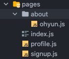 이렇게 pages 안에 about 폴더를 만들고 파일을 만들었다. 그러면 url에 /about/ohyun을 붙이면 저 페이지로 이동한다.