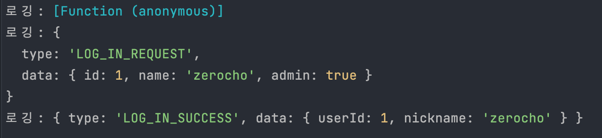 동기는 기본적으로 객체로 받고, 비동기는 함수로 받는 것이 약속이다. 따라서 if문을 활용해 action이 함수이면 비동기로 실행하고, 객체이면 동기로 수행한다.