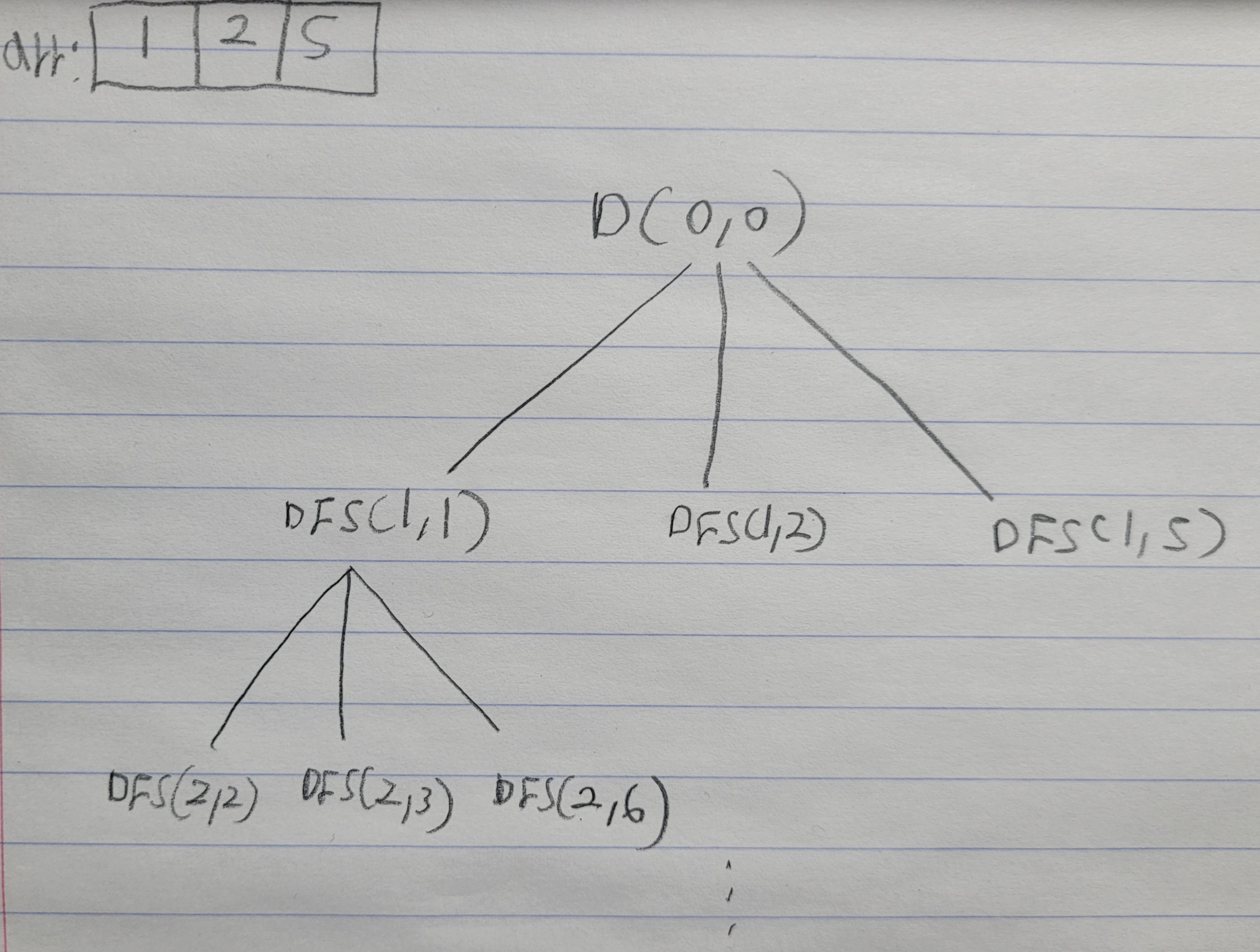 이 문제는 DFS(L, sum)으로 해서 풀어야한다. 여기서 L은 동전의 개수이고 sum은 값의 합이다.