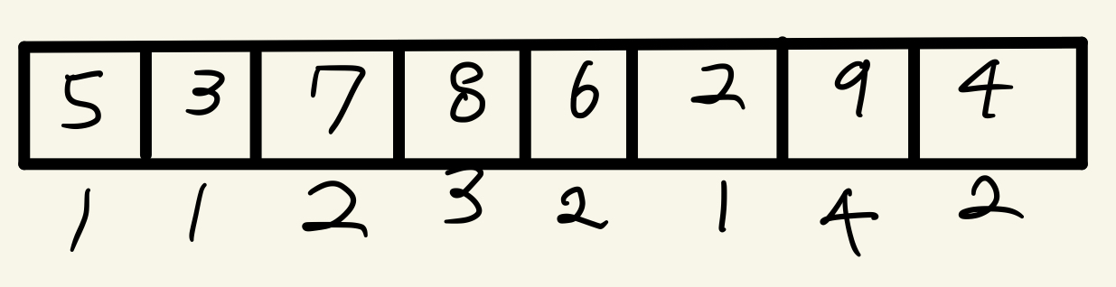 세번째 7은 자기보다 작고 앞에 있는 배열의 최대 길이에서 +1을 해주면된다. 네번째 8도 마찬가지다.