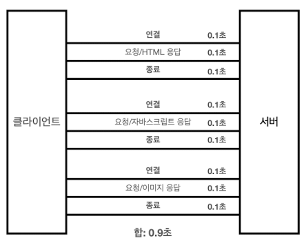 HTTP 지속 연결을 사용하지 않으면 리소스를 가져올 때마다 새로 TCP 연결을 해서 시간이 많이 소요된다.