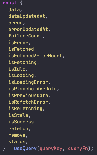 2. 사진 같은 기능들을 제공해주기 때문에 개발자가 복잡한 구현과 설계가 없이도 효율적으로 화면을 구성할 수 있다. 만약 개발자가 isLoading, error를 직접 구현하다가 잘못하여 isLoading, error 모두 true가 되면 오류가 나게 될 것이다.