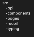 Recoil과 React Query를 사용하면 사진과 같은 파일 구조를 사용해야 할 것이다. 그리고 TypeScript를 사용하여 프로젝트를 진행 할 예정이라 typing 폴더를 따로 만들어 놓는다.