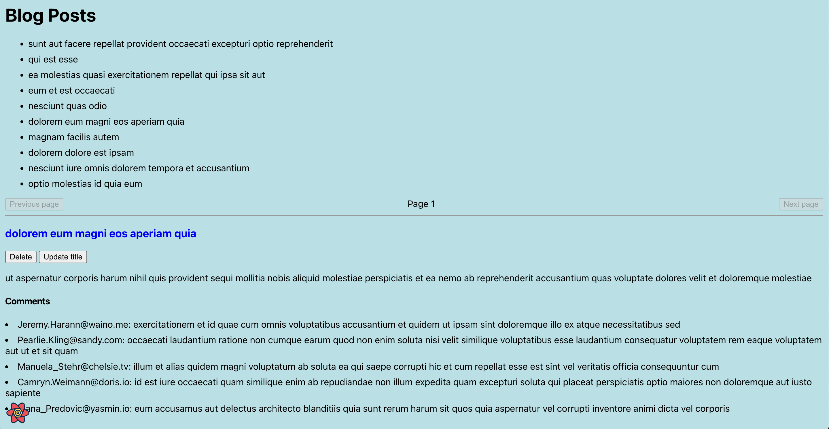 위 사진은 Blog Posts의 글을 클릭하면 각각 다른 comments를 보여주는 사이트이다.