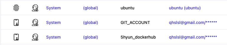 우분투에 접근하기 위해서 private key, repository 및 webhook을 위해 Github Token, Dockerhub에 올리기 위한 Dockerhub Token 이렇게 3가지를 등록했다.