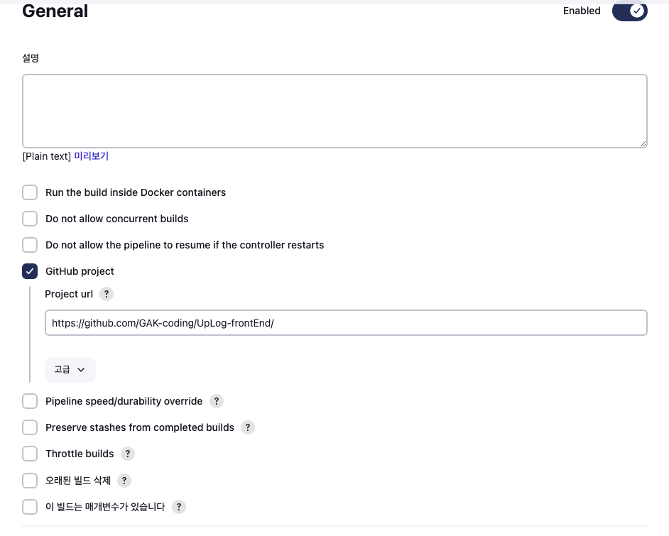 우선 GitHub project에 깃허브 url을 등록했다.