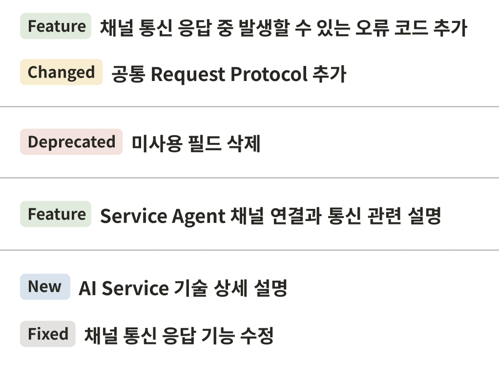 이번 프로젝트를 하면서 위 사진과 같은 화면을 구현을 했어야 했다. Feature, Changed 등 Type 마다 색을 다르게 지정했어야 했다.
